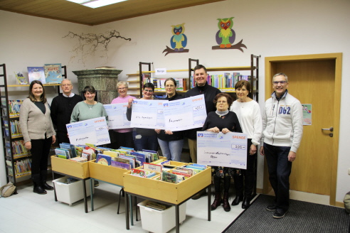 Der Pfarrgemeinderat führte in der Pfarrei Schmidmühlen das ganze Jahr über verschiedene Aktionen durch. Von den Einnahmen des Pfarrfestes, Adventsmarkts und dem Lebkuchenverkauf wurden 1600 Euro an verschiedene Institutionen gespendet. Pfarrer Norbert Große, Pfarrgemeinderat Sprecherin Lena Klieber und ihr Stellvertreter Heinrich Leitz übergaben in den Räumen der Bücherei die Spenden in Höhe von 400 Euro an die FFW Schmidmühlen zur Anschaffung eines Fräswerkzeuges zur Türöffnung, 400 Euro für den Kindergarten für einen neuen Turnkasten. Des Weiteren gingen 300 Euro an die Bücherei zum Kauf von neuen „Was-ist-Was“-Büchern, 300 Euro an die Villa Regenbogen, sowie 200 Euro an das Seniorennachmittags-Team.