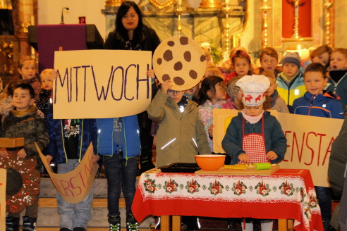 Nach dem Gottesdienst sangen die Kindergartenkinder das Lied „Im Advent ist ein Licht erwacht“ und „Carolina Ofenblechen“ der besten Plätzchenbäckerin weit und breit, der jeden Tag ein neues Rezept einfällt. Viele Besucher konnte man dabei am Samstag verzeichnen. Es war stellenweise am Kirchplatz kein Durchkommen.