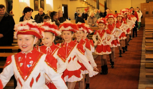 Die Scholakinder, Kinder- und Jugendgarde und Faschingskomitee versammelten sich zum Beginn des Gottesdienstes im hinteren Bereich der Kirche zum gemeinsamen Einzug. Ich freue mich dass viele Kinder sich heute zum Familiengottesdienst maskiert haben“, betonte Pfarrer Norbert Große zum Beginn. „Viele Menschen verkleiden sich gerne im Fasching. Die Kinderschola wird unseren Gottesdienst mit frohen Lieder zum Lob Gottes mit gestalten“. Kinder lasen auch die Kyrierufe und Fürbitten vor. Anstatt der Predigt wurde ein Rollenspiel aufgeführt. Der Geistliche sagte dazu „was Jesus im heutigen Evangelium sagt, das klingt in den Ohren von vielen Menschen ein bisschen verrückt: wenn dich einer auf die Wange schlägt, dann schlage nicht zurück, sondern halte ihm die andere Wange hin. Was wir jetzt sehen und hören, was einige Kinder jetzt vorspielen, das kann uns helfen die Worte von Jesus besser zu verstehen“. Drei Gardemädels standen dabei vor dem Altar und ein Clown betrat den Altarraum. „Schau mal wer da kommt, ein Clown“. Dieser pustete Luftschlangen auf und warf Kindern einen Ball zu. Dabei stupste er einen Buben am Arm. Dieser sprang auf und sagte „hey, der hat mich einfach an gestupst, Was soll das? Und jetzt grinst er auch noch. Na warte, das wird dir gleich vergehen, wenn ich dir eine Watschn geb“. Der Bub meinte der Clown wird bestimmt gleich zurück schlagen, aber es kam anders. Der Clown stand auf und zeigte lächelnd auf seine Wange, bildete mit den Fingern ein Herz und malte den Buben ein Herz auf die Wange. Die drei Gardemädels fragten sich wer war wirklich der Starke? So ein Narr möchte ich auch werden“. Der Clown malte auch den drei Mädeln ein Herz auf die Wange und erwiderte „diese Ideen habe ich von Jesus“. Pfarrer Norbert Große betonte „ja es lohnt sich immer neu aufmerksam auf die Wort von Jesus zu hören. Er zeigt uns Wege des Friedens und der Versöhnung“. Gemeinsam wurde auch das Vater unser gesungen, unter Gitarrenbegleitung von Pfarrer Norbert Große. Zum Schluss dankte der Geistliche allen Beteiligten am Gottesdienst und wünschte allen noch einen vergnüglichen Faschingsendspurt.